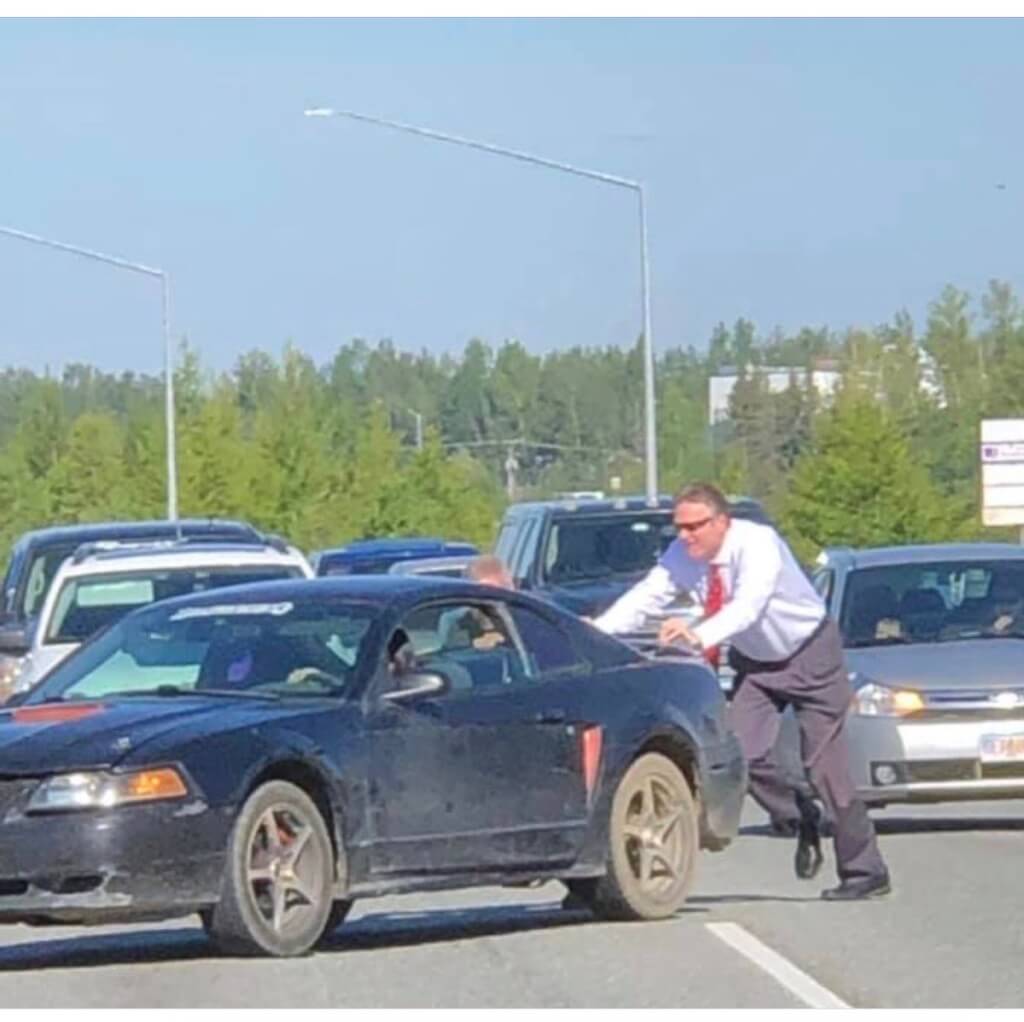 10 июня по дороге на работу в Василле губернатор Аляски Майк Данливи увидел сломавшийся на трассе автомобиль.