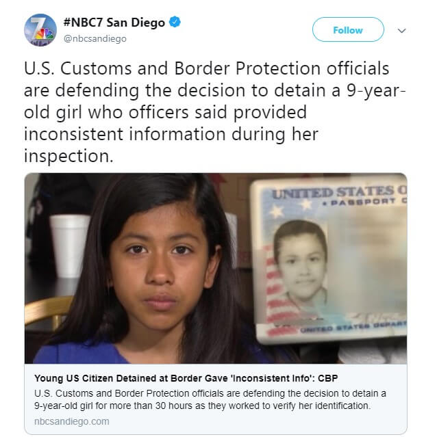 Представитель Пограничной службы сказал TIME, что девочка предоставила «противоречивую информацию» во время проверки, и ее взяли под стражу «для обеспечения должной осмотрительности в подтверждении ее личности и гражданства». Сотрудник добавил, что очень важно подтвердить личность ребенка, путешествующего без родителей или законного опекуна.