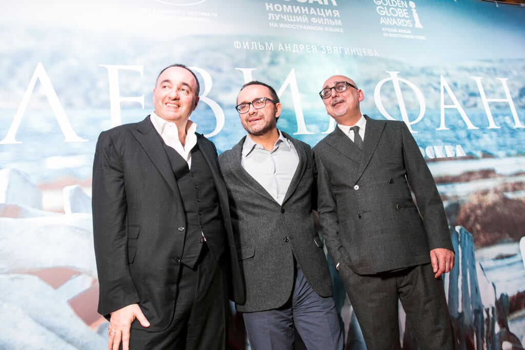 Продюсеры "Левиафана" Александр Роднянский и Сергей Мелькумов, режиссер  Андрей Звягинцев Фото пресс-службы A Company Russia