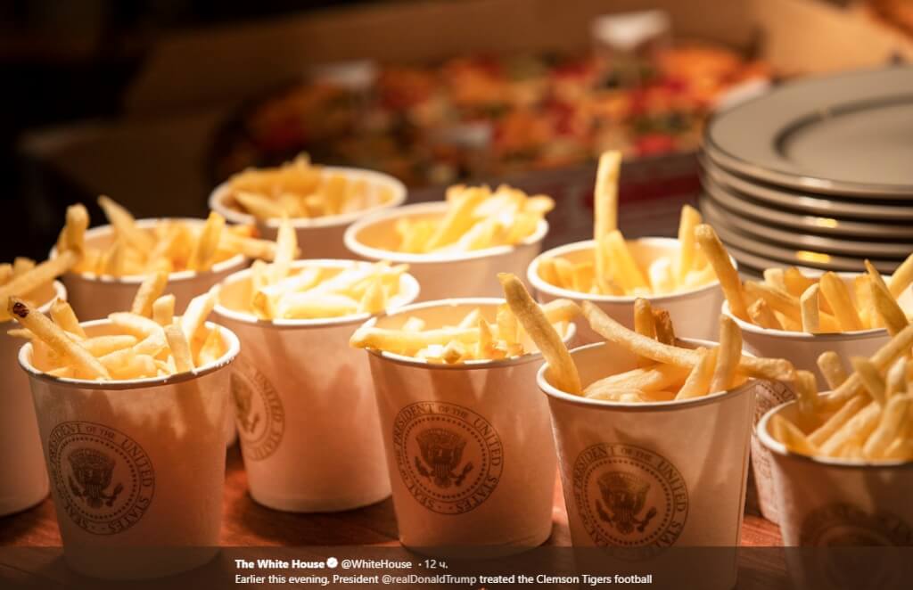 Также президент заказал из ресторанов быстрого питания пиццу и жареный картофель фри.