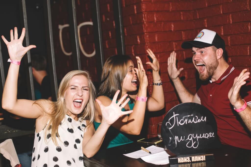 – игра не только для больших шумных компаний (можно участвовать даже вдевятером!), но и для парочек (да-да, «Квиз, плиз!» рад маленьким уютным компашечкам из двух человек);