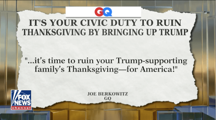 Журнал GQ Magazine призывает читателей превратить в “ад” День благодарения для их родственников, поддерживающтх президента Дональда Трампа.