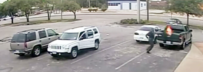 В ноябре 2015 года фургон инкассаторов подъехал к отделению Bank of America в северной части Хьюстона. Из машины вышел инкассатор, забрал в офисе деньги и пошёл обратно по направлению к транспорту, когда из припаркованной неподалёку машины вышел темнокожий мужчина в бронежилете и открыл огонь из полуавтоматической винтовки.