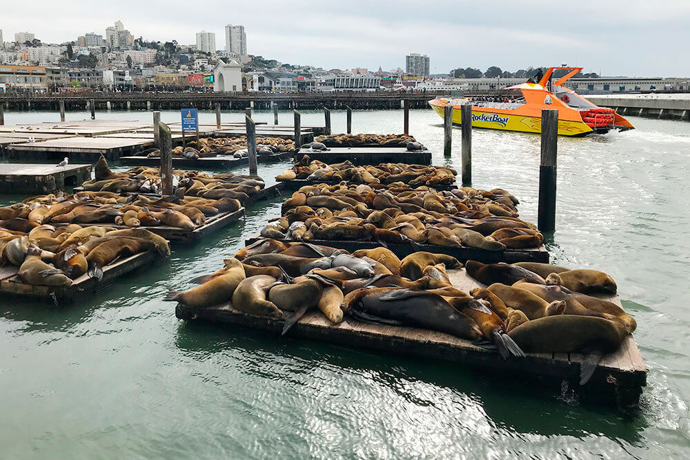 Морские котики отдыхают на набережной в Сан-Франциско, а еще громко кричат и плохо пахнут. Фото автора статьи