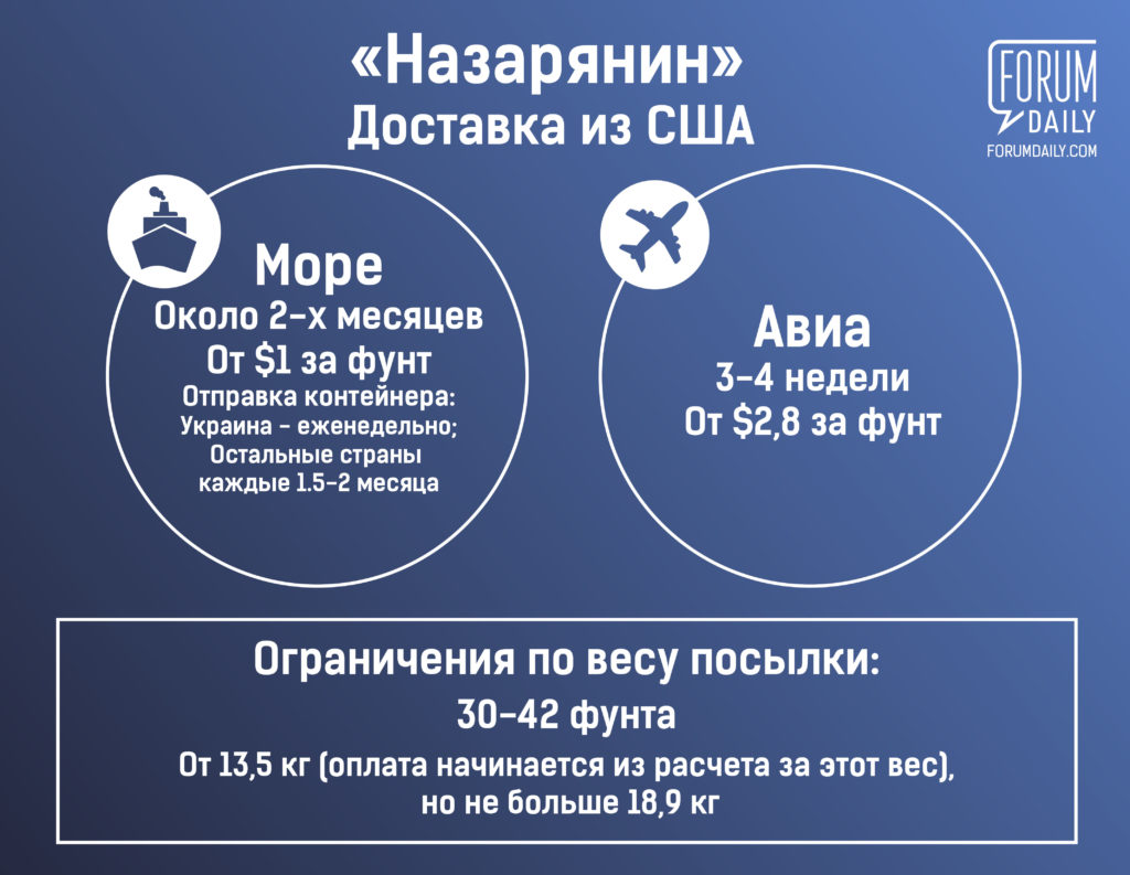 Доставка до почтового отделения. Если доплатить $10 при доставке в Украину и Беларусь морем, посылку вручат прямо в руки клиенту.