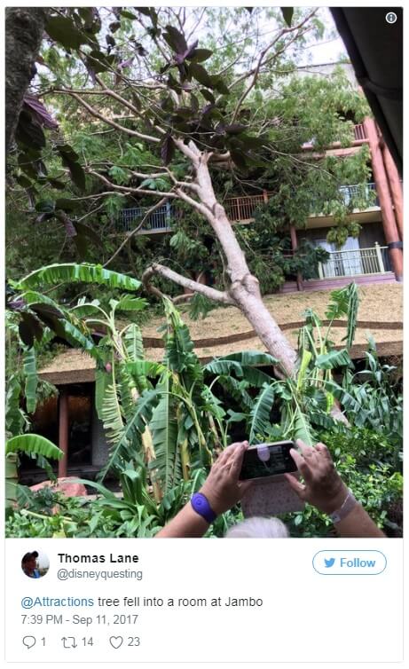 The exit to Africa from Pandora is closed as many trees fell along the path #HurricaneIrma pic.twitter.com/sCi9ZrvKE2