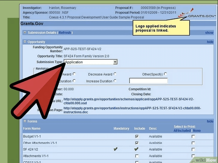 Как только вы подключитесь к интернету, откройте титульную страницу пакета приложений и нажмите Save & Submit, чтобы загрузить документы на Grants.gov. Убедитесь, что ваши прикрепленные файлы соответствуют требованиям государственного агентства, управляющего грантом. Ваше отправление не должно превышать в общей сложности более 200 мегабайт, хотя требования управляющего органа к гранту, на который вы претендуете, могут изменить данное ограничение.