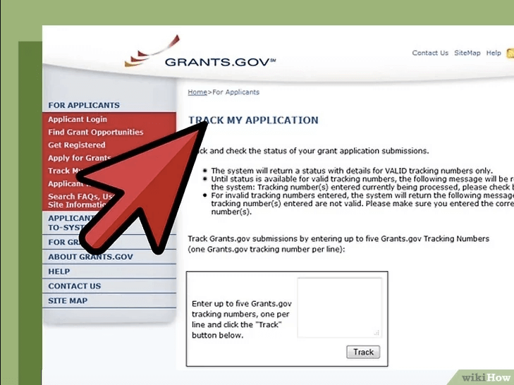 • До получения ответа от представителя агентства вы можете проследить за своим обращением на Grants.gov, нажав Track My Application на левой навигационной панели сайта. Введите номер для отслеживания заявления, которое хотите проверить; вы можете ввести до 5 номеров. Для слежения за большим количеством заявок зайдите на Grants.gov и нажмите ссылку Check Application Status.