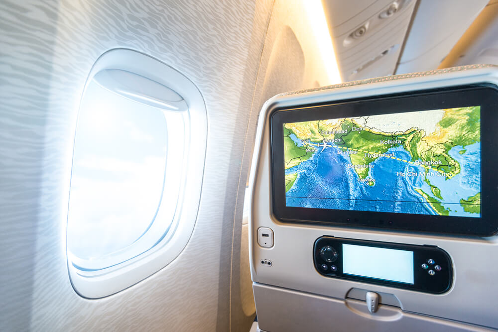 Крохотный экранчик, прыгающий в разные стороны, и часто прерывающийся звук, как из кастрюли – таков просмотр видео во время полёта, и его вряд ли можно назвать ощущением с погружением.