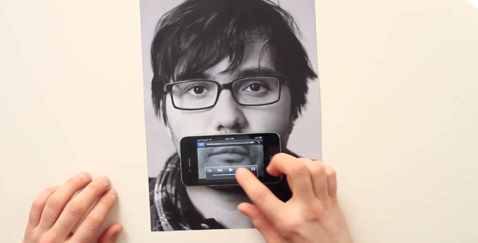2. Студент-дизайнер из Франции Виктор Пети рассылал диджитал и рекламным агентствам свое фото, где вместо рта — QR-код. При сканировании вы попадаете на видеоролик, где видно только рот дизайнера, рассказывающего, почему он должен получить работу.