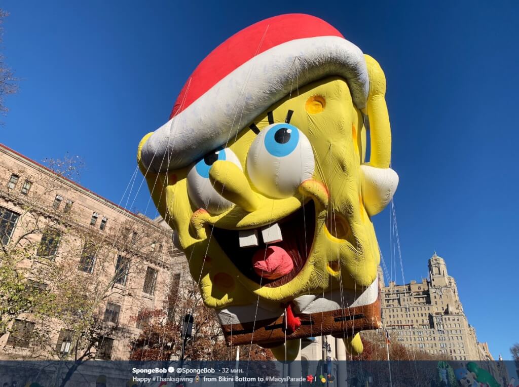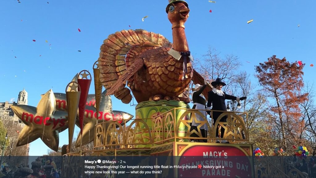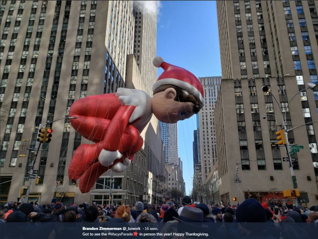 Here comes ?! He's dashing down 34th Street in the biggest float in the #MacysParade. Thanks for tuning in — we hope you have a wonderful Thanksgiving. #MacysBelieve pic.twitter.com/rLIPwpztj7