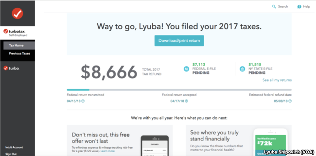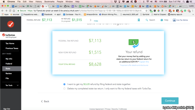 Заполнять налоговую форму можно вручную, распечатав формы с сайта Федеральной налоговой службы (https://www.irs.gov/forms-instructions) и отправив затем по почте. Можно обратиться к специалистам, которые помогают заполнять, что обойдется от $0 (людям с низким доходом часто помогают студенты или волонтеры) или $ 100-150 (индивидуальные налоги со средним заработком) и до весьма значительных сумм. Также можно воспользоваться онлайн-сервисами для заполнения налоговых форм. Предыдущие годы я обращалась к специалистам-бухгалтерам, а в этом году решила воспользоваться программой TurboTax, потому что хоть так получается и дороже, но могу достаточно подробно указать свои расходы, которые могут быть списаны с налогов, а, следовательно, в результате я буду в выигрыше.
