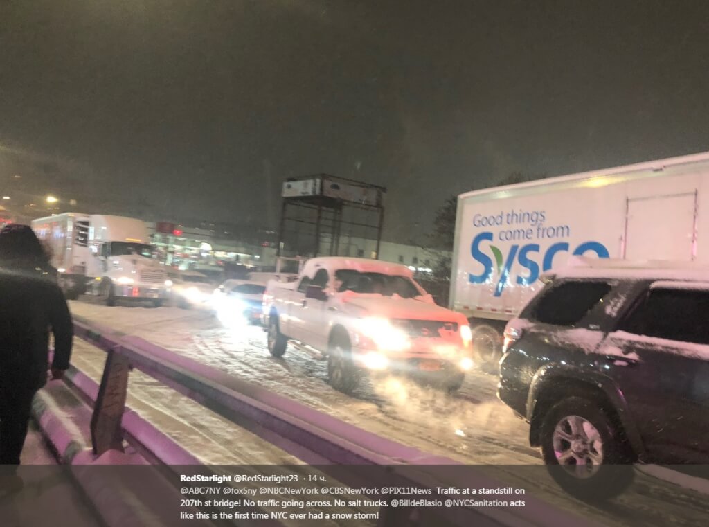 «Сложности вызвало то, что несколько мостов закрыли, и движение, особенно в Бронксе, на Верхнем Манхэттене и на Стейтен-Айленде остановилось, и наше оборудование для очистки снега застряло внутри», — сказал Турсо.