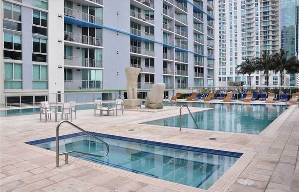 Квартира за $1600 с отличным расположением близко к Бэйсайду и парку Bayfront, а также к арене АmericanAirlines, которая считается главной в Майами концертной площадкой. В этой студии — большая ванная, деревянный пол, замечательный вид с балкона на залив и даунтаун. Интернет включен в стоимость. На территории — два бассейна и тренажерный зал.