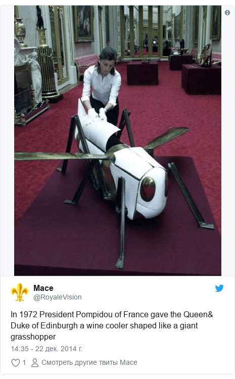 Полезное «насекомое» было подарено королеве в 1972 году бывшим президентом Франции Жоржем Помпиду.