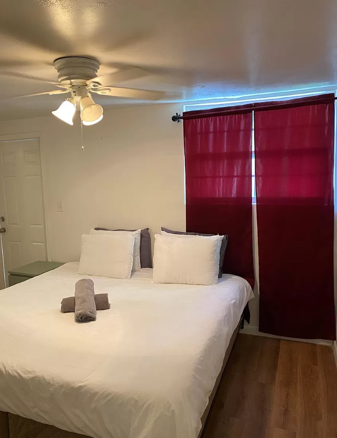 Дом расположен в тихом районе, рядом со всеми удобствами: магазинами, банками, ресторанами, разными видами транспорта. Недавно окрашенная квартира готова к заселению. Есть холодильник, вентиляционная вытяжка, ванная комната с душем, задний двор как общая зона для отдыха. Арендатор оплачивает воду, мусор и электричество. Запрещено курить и проживать с домашними животными.
