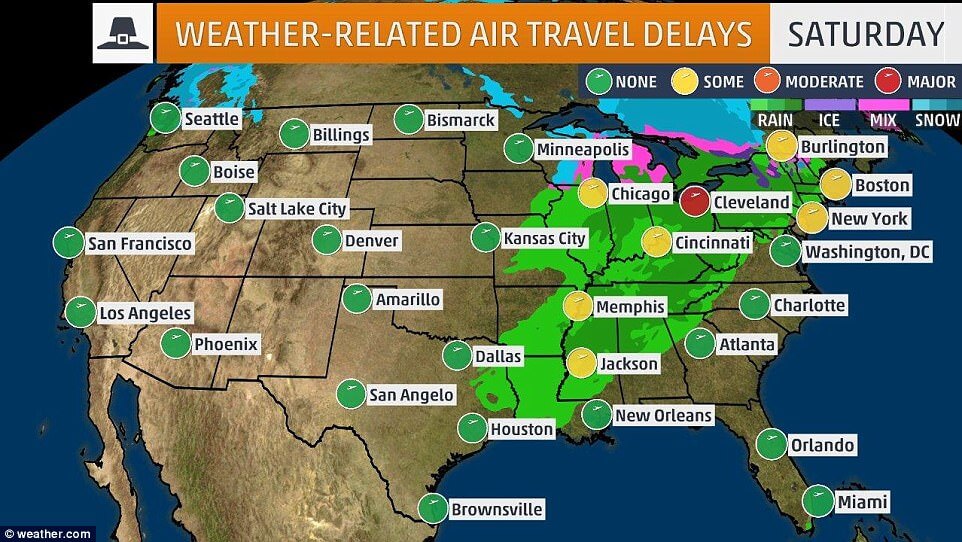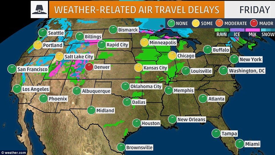 Кроме того, на поездку может повлиять погода в Чикаго, Миннеаполисе и Канзас-Сити.