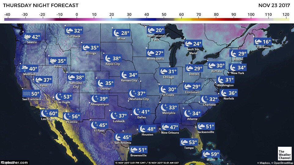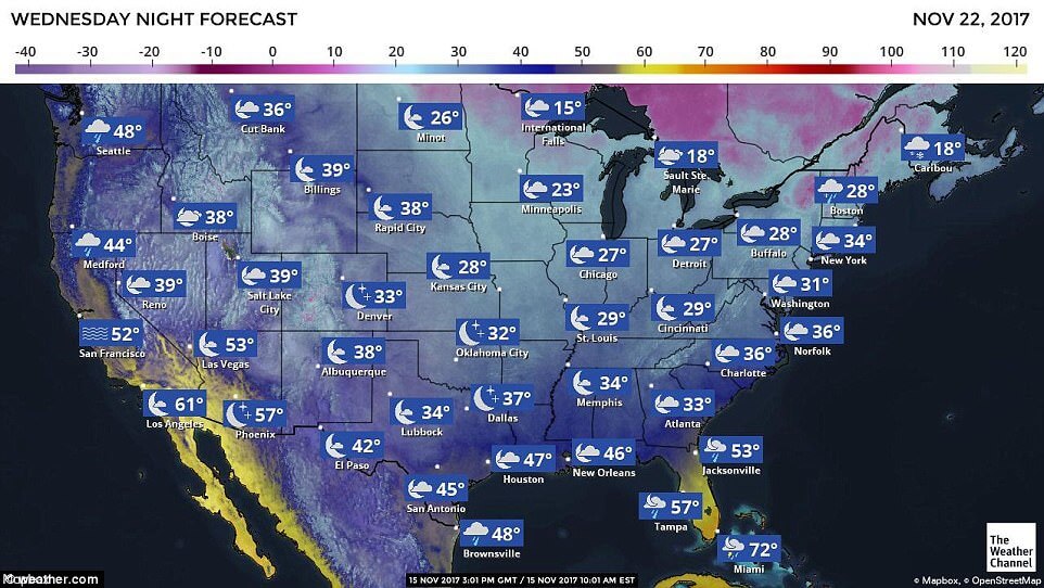Ожидается, что самая мягкая погода на День благодарения будет на Западе.