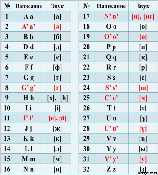 Этим же указом Назарбаев утвердил новый алфавит казахского языка, основанный на латинской графике. В нем 32 буквы, в том числе девять букв с апострофами. Они будут использоваться для обозначения шипящих и других звуков, которых обычно нет в языках, использующих латинскую графику.