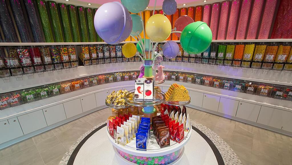 Детям, правда, вряд ли захочется оставаться в спортбаре, когда через дорожку, прямо напротив карусели (да-да, на палубе есть еще и большая карусель, как в парке аттракционов) располагается Sugar Beach. Магазин, оформленный в конфетных нежных тонах, предлагает свыше 100 видов сладостей и мороженого — главное, не оставлять ребенку карточку.