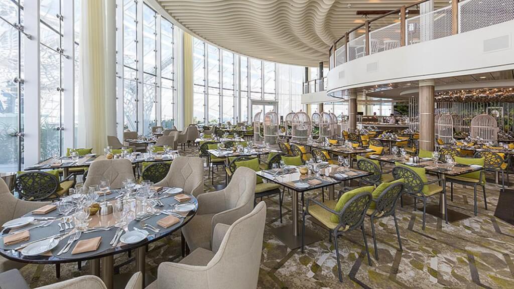 Традиционный для постояльцев отелей шведский стол лишь малая часть того, что может предложить лайнер. На восьмой палубе в Central Park по франшизе работает итальянский ресторан Джейми Оливера, там же гостей ждут несколько баров с уютными столиками посреди парка, где собрано 12 тысяч видов растений.