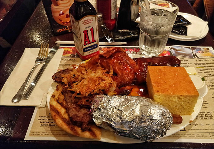 Бизнес-ланчи есть в немногих сетевых кафе и ресторанах Нью-Йорка, пообедать там стоит $12–15 (684–855 рублей). Но совсем не обязательно искать именно ланчи. В среднем заведении в районе Мидтаун на Манхэттене можно наесться чашкой супа за $4,5 (257 рублей) и бургером за $8 (456 рублей), прибавляем налог — и выходят те же $14 (798 рублей). Можно и дешевле: закажите в мексиканском гриль-кафе Chipotle большую миску с курицей гриль, фахитос (овощами на гриле) и фасолью за $8–9 (456–513 рублей).