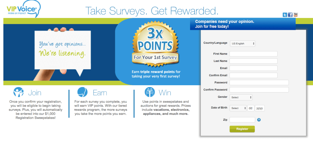 Это довольно популярный сайт с платными опросами. Vip Voice начисляет вам очки после каждого опроса, которые можно обменять на подарочные карты. После того, как вы присоединитесь к Vip Voice и сделаете несколько опросов, обратите внимание на специальный опрос, который предлагает вознаграждение в размере $ 25 долларов.
