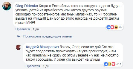 В комментариях один из пользователей предположил, что если бы в России так же гибли дети от огнестрельного оружия, россияне тоже вышли бы на улицы, в чем музыкант засомневался.