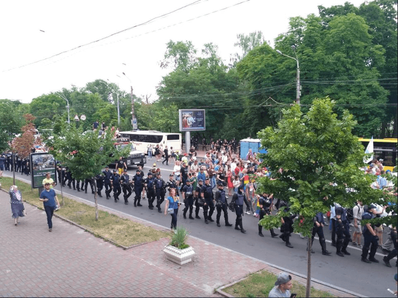 «Примерно в 6 часов группа лиц, а это более 150 человек, вышли на перекресток улицы Владимирская — бульвар Тараса Шевченко и перекрыла дорогу на маршруте движения «Марша равенства», — сказано в сообщении.