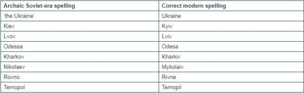 Министерство иностранных дел Украины запустило онлайн-кампанию #CorrectUA с целью призвать иностранные СМИ, официальные лица, а также украинцев, заполняющих документы на английском языке (в том числе заявки на американские визы и грин-карты), отказаться от сформировавшихся в советское время вариантов написания названий украинских городов на английском языке.