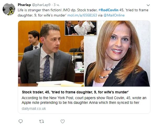 Но только в 2015 году ему предъявили обвинение в убийстве. Вскоре после смерти его жены родители Ковлина получили опеку над его детьми, что лишило его контроля над наследством в 5 миллионов долларов.