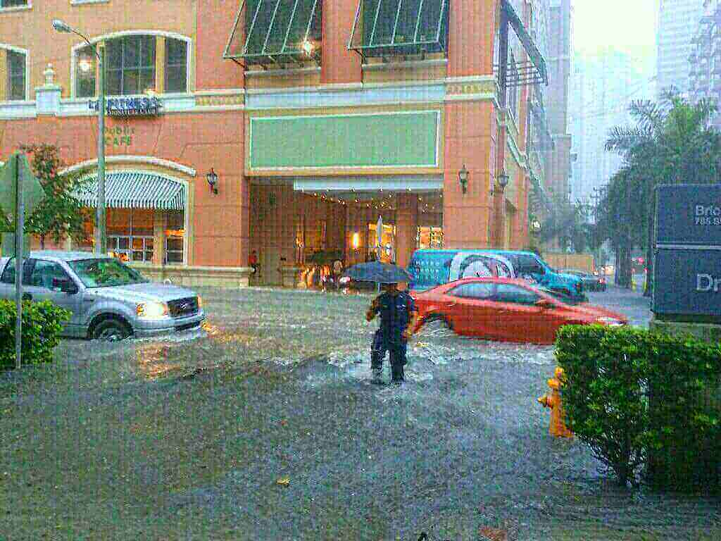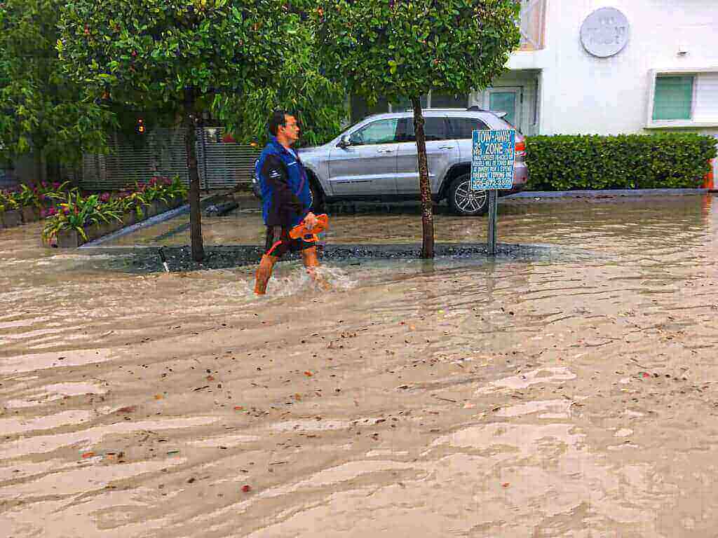 Из-за тропического шторма Эмили на Майами обрушился ливень. Майами-Бич и центр города оказались затопленными.