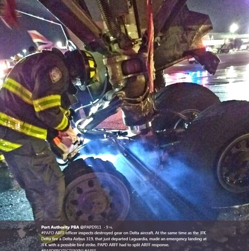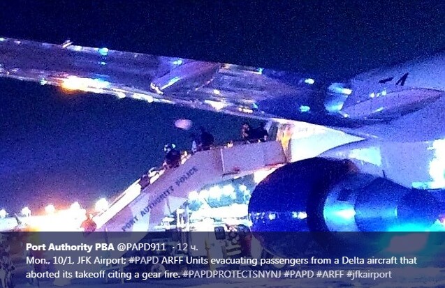 Mon., 10/1, JFK Airport; Delta aircraft aborted take off, reported gear fire. Port Authority Police Aircraft Rescue Fire Fighter (ARFF) Unit on scene. #PAPDPROTECTSNYNJ #PAPD #JFKAIRPORT pic.twitter.com/R1dBpwihcM