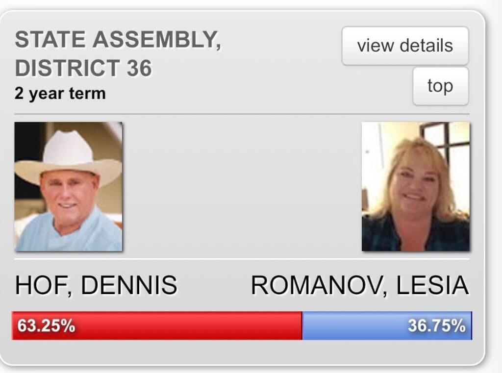 Действующие депутаты Невады никак не прокомментировали итоги выборов, но по закону Хоф должен быть посмертно отстранён от дел уже к середине ноября, а на его место выбран другой политик. Однако исключительно из числа представителей республиканской партии.