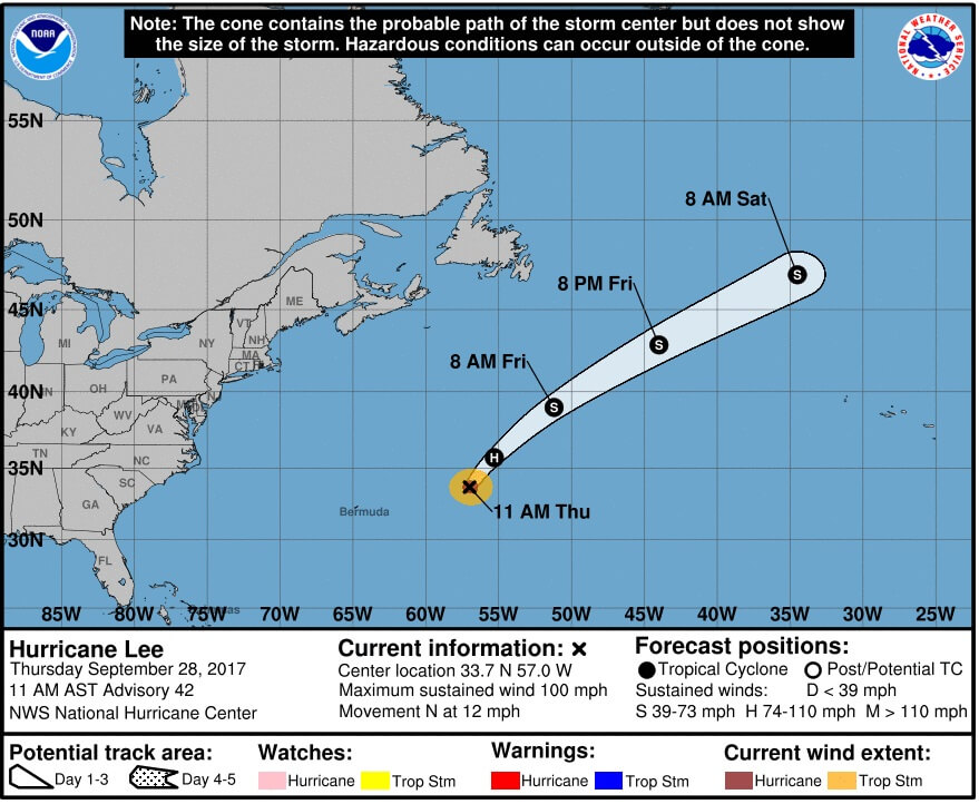 - Ли, набравший силу урагана 24 сентября.