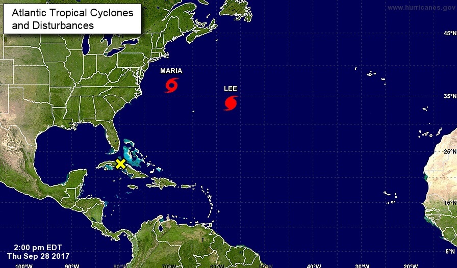 Ураганы Мария и Ли удаляются от суши. В Африке пока нет никакого другого природного явления, которое могло бы заставить беспокоиться в ближайшие дни.
