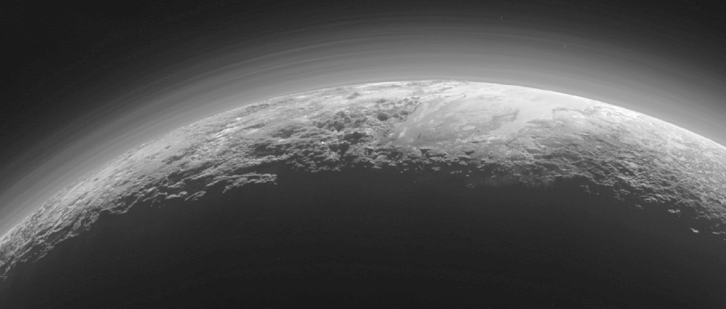 Эти фото были получены во время эпического облета планеты зондом New Horizons 14 июля на расстоянии 18 тысяч км от поверхности планеты. Во время заката длинные тени от ледяных гор кажутся особенно вытянутыми сквозь несколько слоев атмосферы карликовой планеты. «Эти изображения действительно оставляют чувство, будто ты там, на Плутоне, рассматриваешь ландшафт своими глазами», – говорит главный эксперт миссии Алан Стерн (Alan Stern) из университета Колорадо в Боулдере.