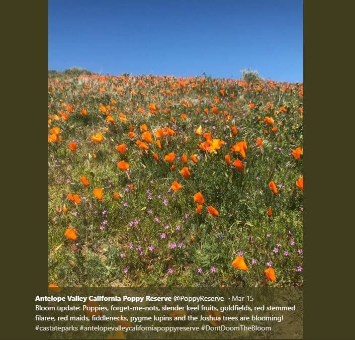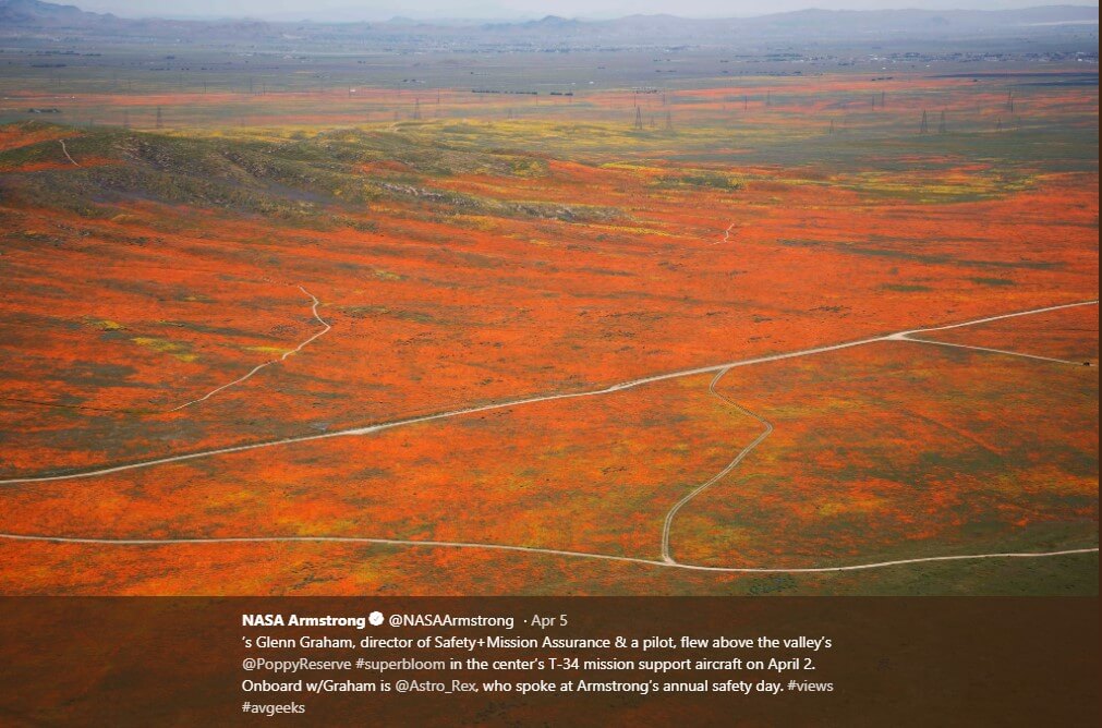 Чиновники NASA и государственных парков воспользовались возможностью, чтобы напомнить посетителям заповедника о том, как важно оставаться на обозначенных тропах, не собирать и не топтать цветы, не выгуливать там собак и, по возможности, приезжать в будни, когда людей меньше.