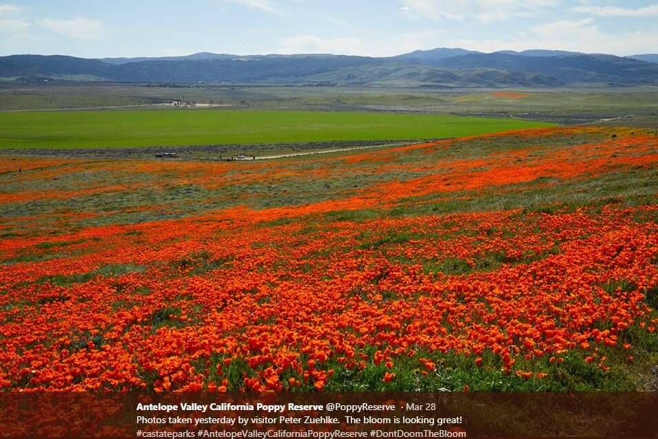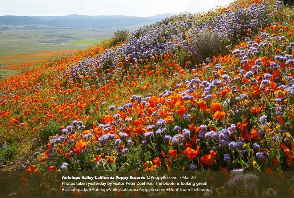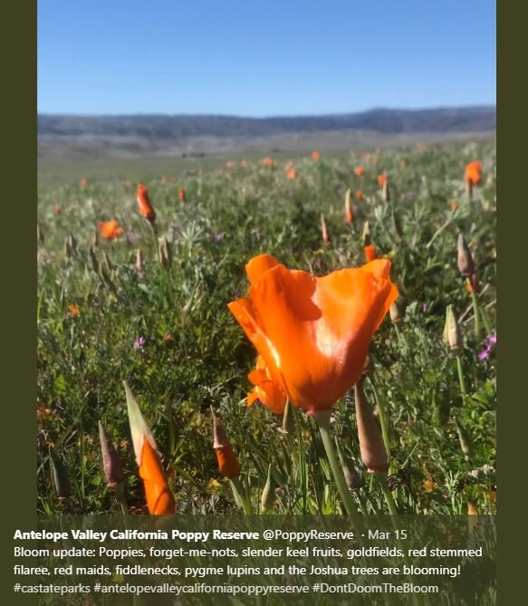 В последние несколько недель в долину Антилоп — заповедник калифорнийских маков — толпами стекаются посетители. Каждому хочется воочию увидеть склоны и поля, залитые яркими красками цветущих оранжевых маков и полевых цветов.