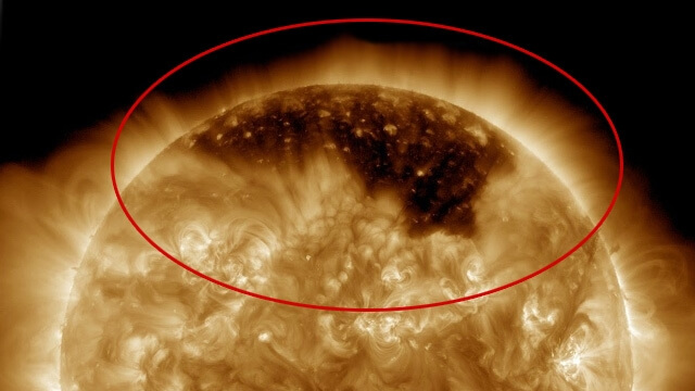 Огромная дыра была недавно обнаружена в верхней части короны Солнца.