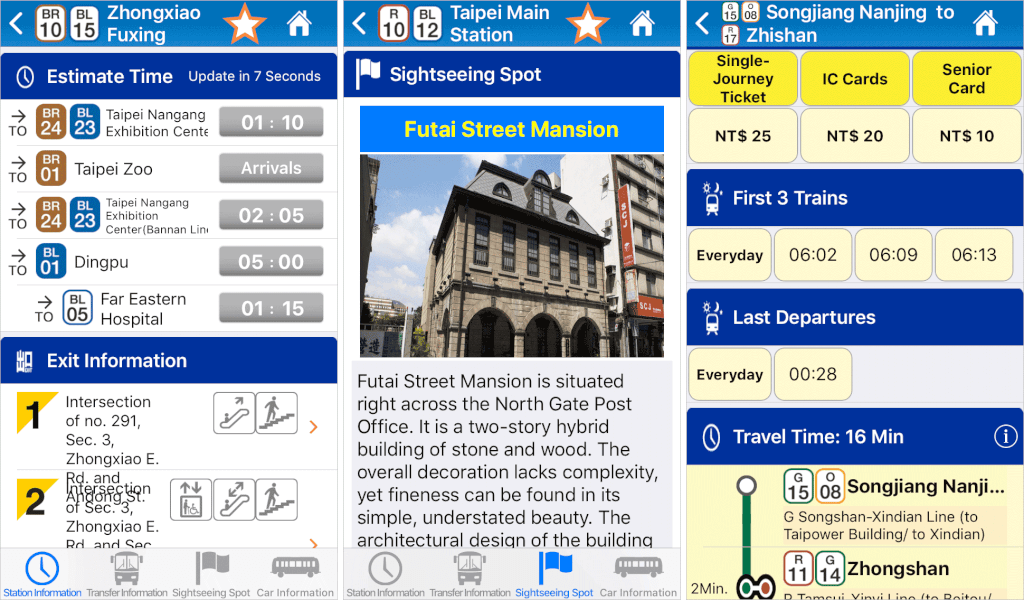 Такси. Цены на него немного различаются в разных городах острова. В Тайбэе первые 1,25 км стоят 70 НТД ($2), за каждые следующие 200 метров счетчик прибавит 5 НТД ($0,2). За ночную поездку к общей сумме добавят еще 20 НТД ($0,6). Если решите доехать на такси из одного города в другой, придется договариваться с водителем: в таких случаях счетчик не включают.