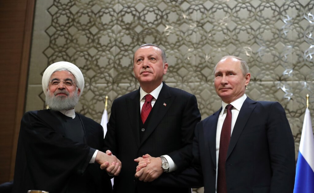 Во время пресс-конференции по итогам трехсторонней встречи по сирийскому урегулированию произошел конфуз – президент Турции Реджеп Тайип Эрдоган «отодвинул» в сторону своего российского коллегу Владимира Путина. Об этом в своем Twitter написал журналист кремлевского пула Дмитрий Смирнов.