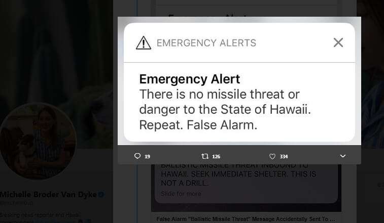 К 14 января власти Гавайев изменили процедуру оповещения населения: теперь за рассылку сообщений об атаке будут отвечать не один сотрудник, а два.