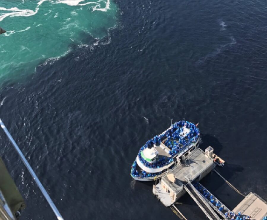 Туристы не на шутку испугались, увидев черное растущее пятно у основания Ниагарского водопада и неприятный запах, который исходил от воды.