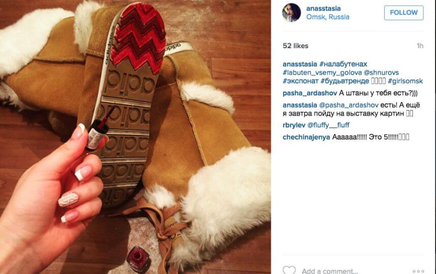 Примечательно, что в ход идут не только классические бежевые туфли на высокой шпильке, но и другая обувь, например, угги или черные босоножки.