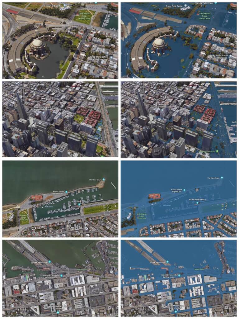 Из-за этого Сан-Франциско может потерять известные туристические достопримечательности и важные инфраструктурные объекты, такие как Рыбацкая пристань, Крисси-Филд, Дворец изящных искусств, Башня Salesforce, офисы Google, аэропорты Сан-Франциско и Окленда и пристань паромов.