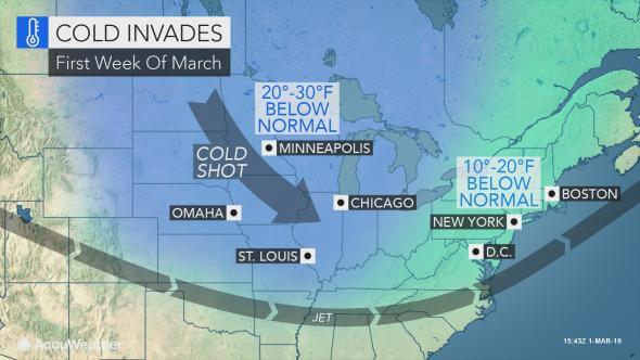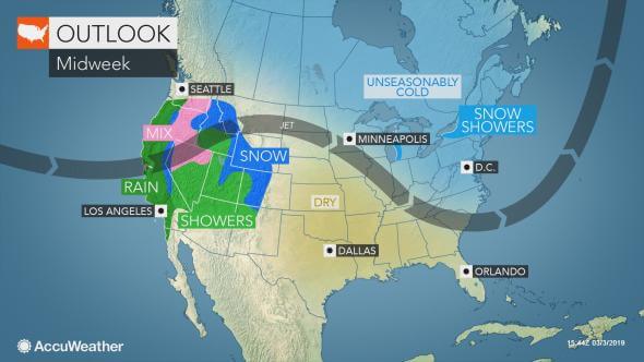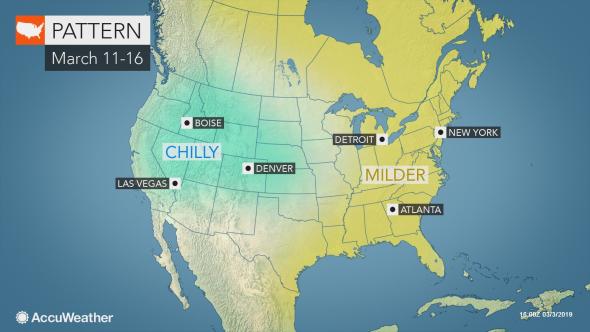 Ко второй неделе марта в США ожидается более типичная температура для этого времени года, благодаря потоку воздуха с запада на восток.