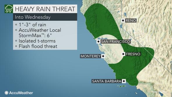 Ожидается, что во вторник по всему штату Калифорнии пройдут дожди, а самые опасные и сильные будут в центральных районах. Кроме того, дождь может продолжиться в среду.