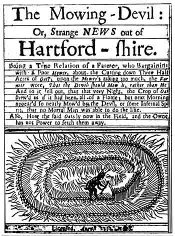 В 1678 году в Великобритании вышла брошюра «Дьявол-косарь», где была нарисована характерная фигура с рогами и копытами, выкашивающая два круга на поле.