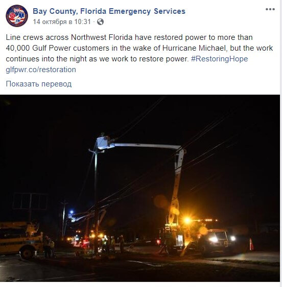 В зоне поражения остается еще много работы. Более 150 тысяч домов и предприятий Флориды все еще остаются без электричества. 100 тысяч человек сидят в темноте в Джорджии, Северной Каролине и Вирджинии. Скотт сказал, что тысячи работников коммунального хозяйства работают на месте, чтобы вернуть электропитание в сообщества, пострадавшие от шторма.